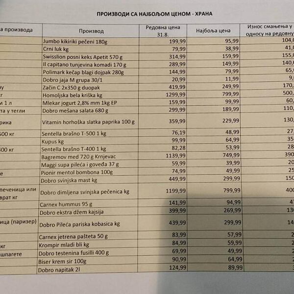 Proizvodi će u prodavnicama imati oznaku "Najbolja cena", a reč je o prehrambenim proizvodima, kao i za ličnu higijenu i kućnu hemiju.