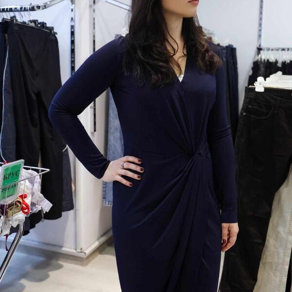 Treći, i meni lično najbolji "stajling" za novogodišnju noć, je Zarina teget, dugačka haljina. Uz crne štikle i frizuru itekako može da zablista u "najluđoj noći".