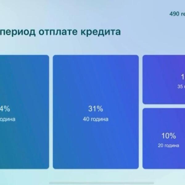Što se perioda otplate tiče, pri vrhu liste su rok od 30 godina (34% zahteva) i od 40 godina (31% zahteva).