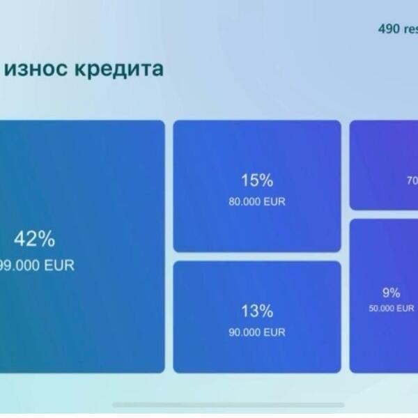 Traženi iznos kredita je u 42% slučajeva 99.000 evra, oko 15% mladih želi kredit od 80.000 evra, a njih 13 procenata od 90.000 evra.
