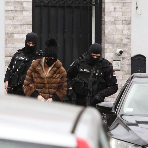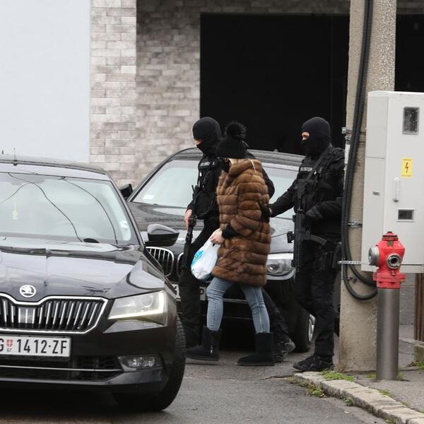 Naime, nju su pripadnici SBPOK-a iz kuće na Zvezdari izveli s lisicama na rukama, na sebi je imala bundu, kapu, kao i velike tamne naočare.