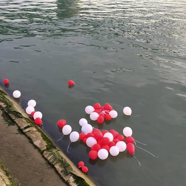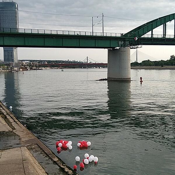 Cveće pluta Savom, napravljeni su i baloni u obliku srca koji su krenuli ka mostu i formiraju slovo "P". Svi se čude kako baloni idu jedan za drugim, ne razdvajaju se.