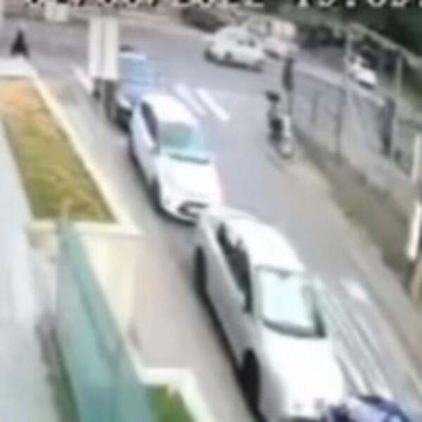 Sada se pojavio snimak nesreće, a sigurnosne kamere su uhvatile trenutak kada automobil udara u motocikl i obara vozača na zemlju.