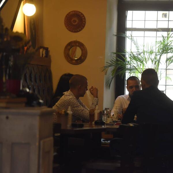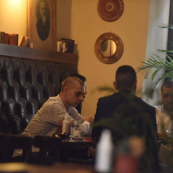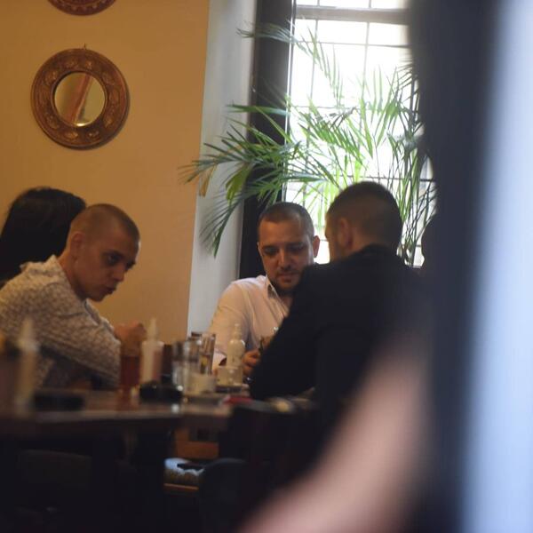 Ostalo je još nekih sat vremena do suđenja, a Zoran Marjanović opušteno ispija kafu u društvu, pored njega nalazi se i atraktivna crnka