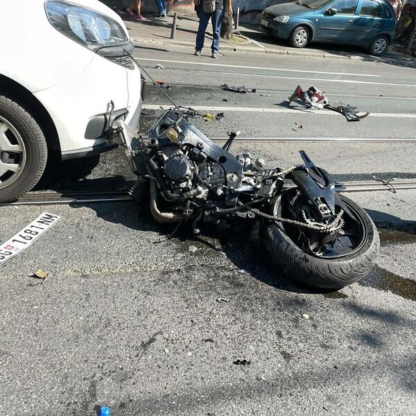 Fotografije sa mesta stravične nesreće u Beogradskoj ulici govore o silini udarca kojom je nesrećni muškarac podleteo pod automobil. Motocikl "suzuki" je potpuno smrskan, a delovi četvorotočkaša su rasuti na sve strane.