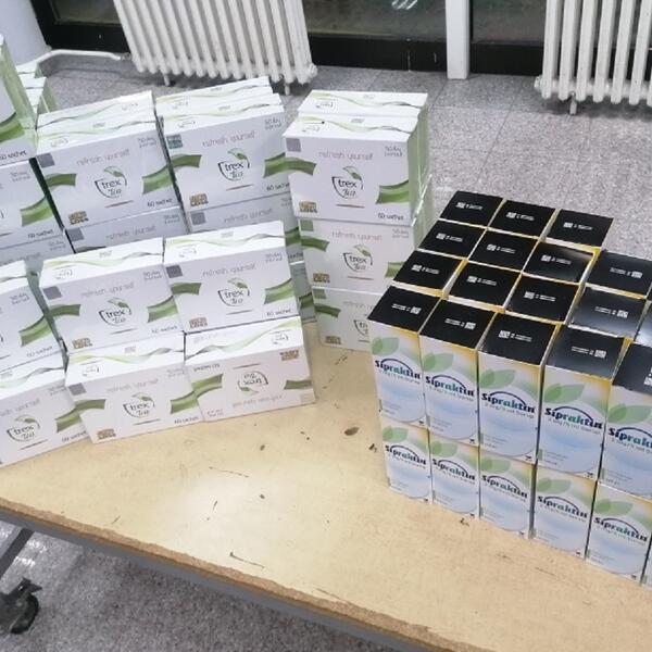Ukupno je otkriveno 50 kutija čaja za mršavljenje ''Trex Tea'' i 50 bočica sirupa za dobijanje na težini ''Sipraktin'', vrednih preko 150.000 dinara, za koje se kao vlasnik prijavio jedan od vozača.