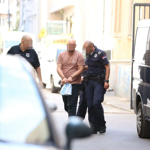 On je u zgradu tužilaštva u Katanićevoj ulici u centru Beograda priveden u pratnji četovoro policajaca i sudskih stražara, sa lisicama na rukama, u istom donjem delu trenerke u kom je i uhapšen juče u hotelu. U rukama je nosio i kesu sa ličnim stvarima.
