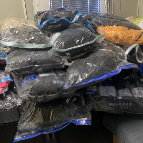 Kese sa muškim jaknama, džemperima i patikama, sa obeležjima robnih marki ''Boss'', ''Hermes'' i ''Karl Lagerfeld'', bile su sakrivene ispod zadnjeg reda sedišta u autobusu. Cene na etiketama svakog pojedinačnog artikla, ukazuju na autentičnost.