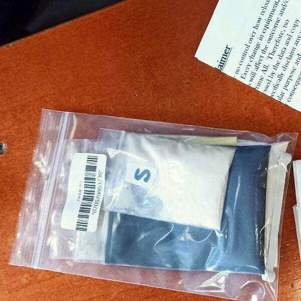 U pošiljci su pronađene četiri pvc kesice ispunjene prahom bele, žućkaste i crne boje, zajedno sa dozerom za punjenje.