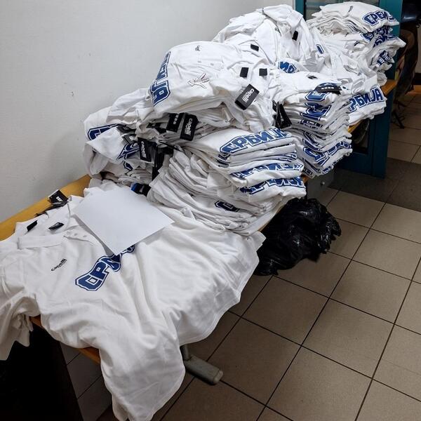 Kontrolom unutrašnjosti vozila, na sedištima i ispod njih, pronađeni su paketi sportskih polo majica u različitim veličinama.