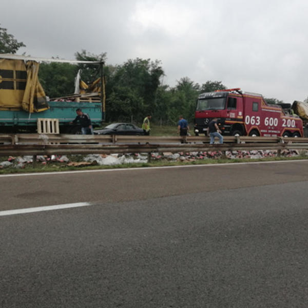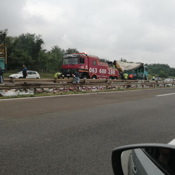 Saobraćaj nije prekidan, međutim, pošto se kamion jednim delom i preprečio na putu, gužva je potrajala, a saobraćaj se odvija zaustavnom trakom.