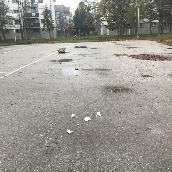 Jutros rano ujutru obišli smo ovaj teren. Igraliošte je inače zavučeno između zgrada, a oko njih su sa jedne strane samo garaže i šuma.