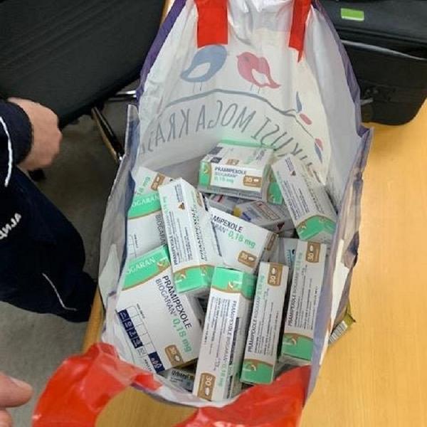 Međutim, kada su je carinici otvorili u njoj su zatekli pravu malu apoteku: 100 kutija sedativa ''Urbanyl 10mg '' i 11 kutija sedativa ''Pramipexole 0,18mg'', što je ukupno 3330 psihoaktivnih tableta bez bilo kakve prateće dokumentacije.