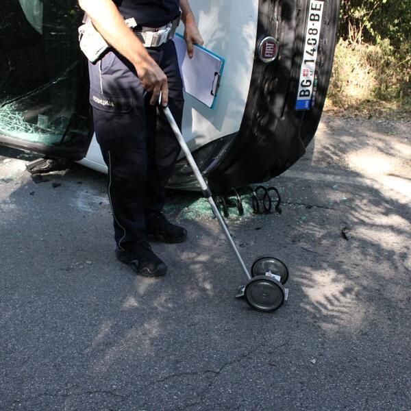 Kao naši reporteri javljaju na licu mesta je policija, a vozač automobila je odvezen vozilom Hitne pomoći, dok drugi daje izjavu policiji.