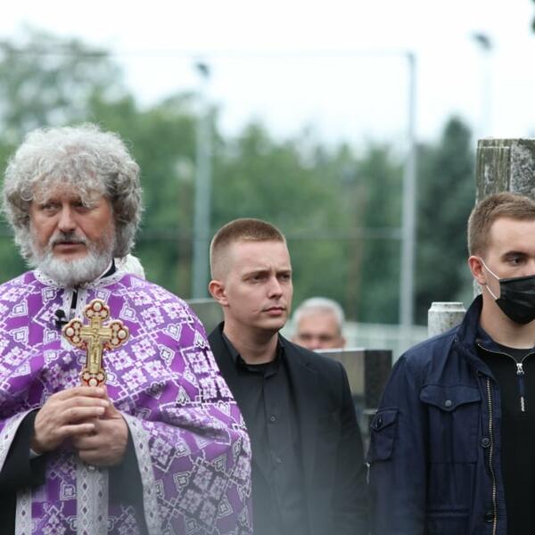 Kovčeg je prvo unešen u crkvu, a služba je održana napolju. Držao ju je starešina hrana Sredo Vranješ.