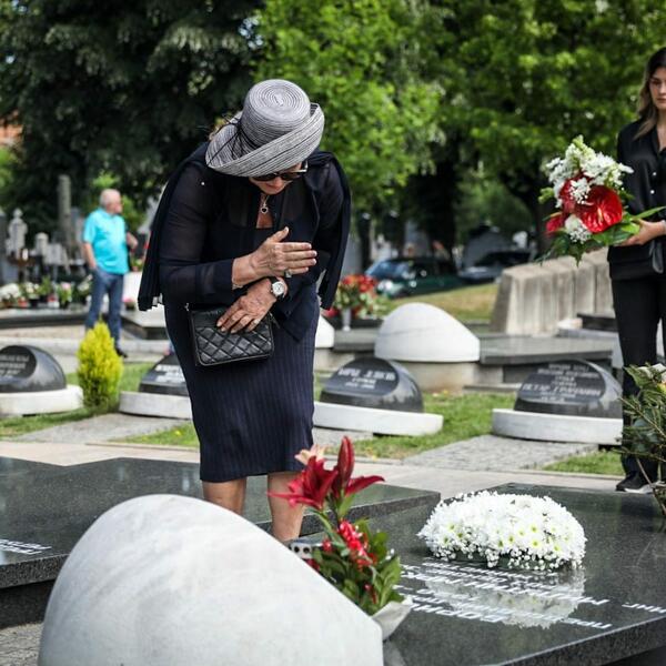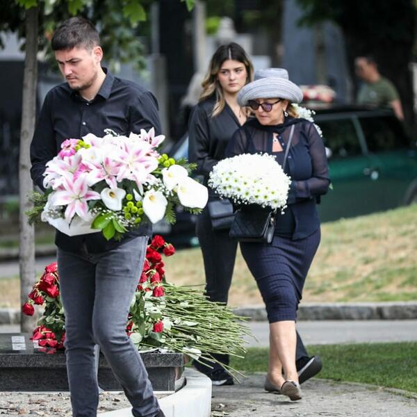 Bekuta je došla sva u crninu, tugu je krila iza crnih naočara, a nosila je sivi šešir. Plakala je čim je prišla grobu, a unuk je sve vreme bio uz nju.