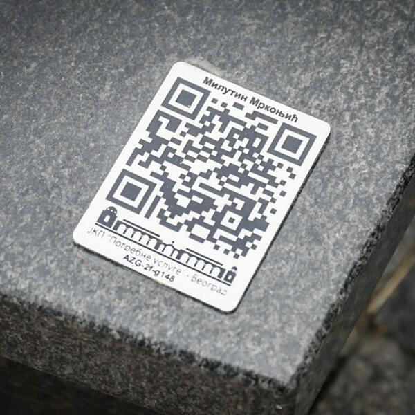 Na nadgrobnoj ploči nalazi se QR kod na su podaci o preminulom Mrkonjiću i delovi njegove biografije