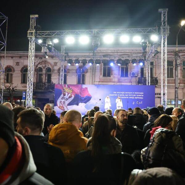 "Dame i gospodo, zahvaljujem vam se što ste u ovolikom broju došli u Jagodinu. Gotovo da sam zaplakao kada sam video toliki broj ljudi koji želi da brani Srbiju. Zna naš narod da je Srbija danas napadnuta, kako spolja tako i iznutra. Zna kada je vreme da se usprotivi i podrži one koji su protiv toga", započeo je Vučić.