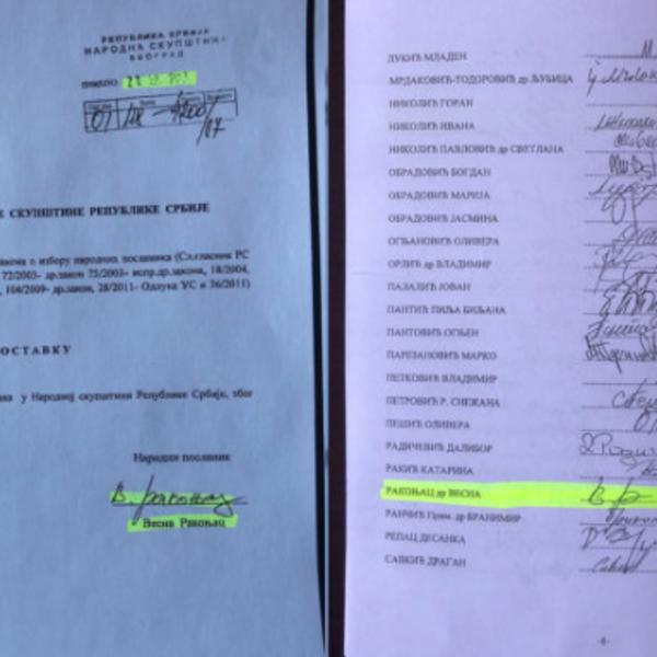 Na fotografijama su ostavke poslanika i njihovi potpisi na zahtevu za sazivanje vanredne sednice: