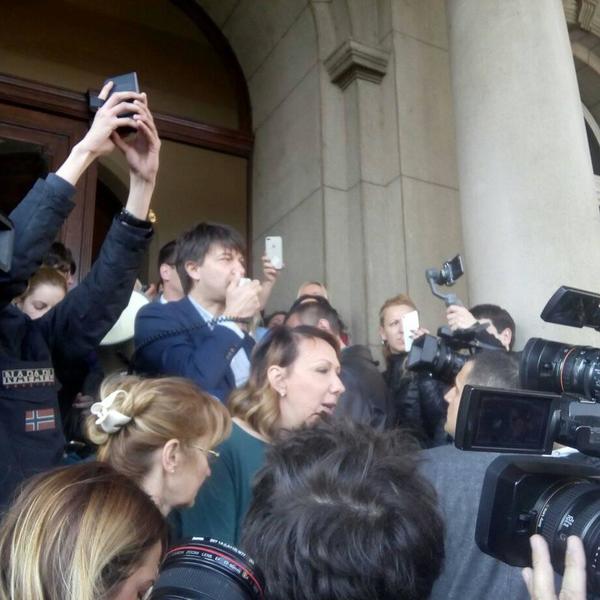 11.49 Boško i sledbenici stigli pred zgradu REM.