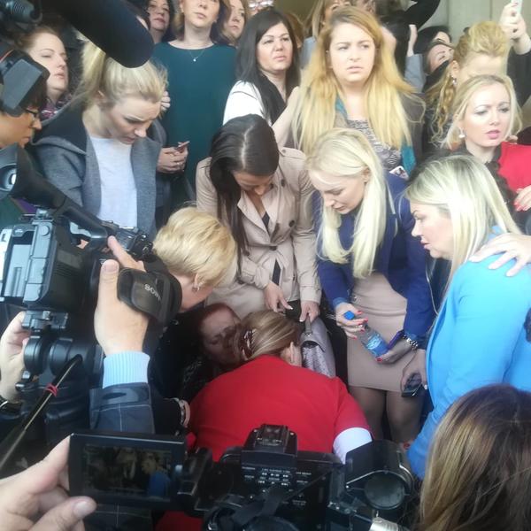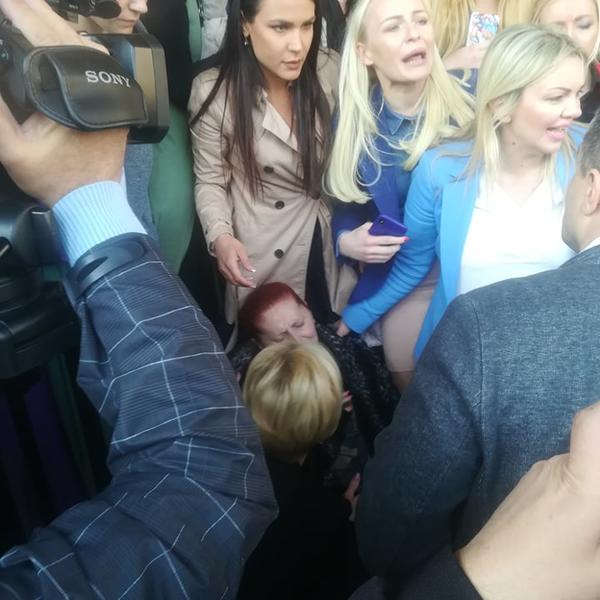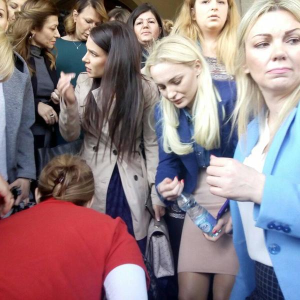10:44 Jednoj ženi je pozlilo, onesvestila se. Polivaju je vodom, leži na podu