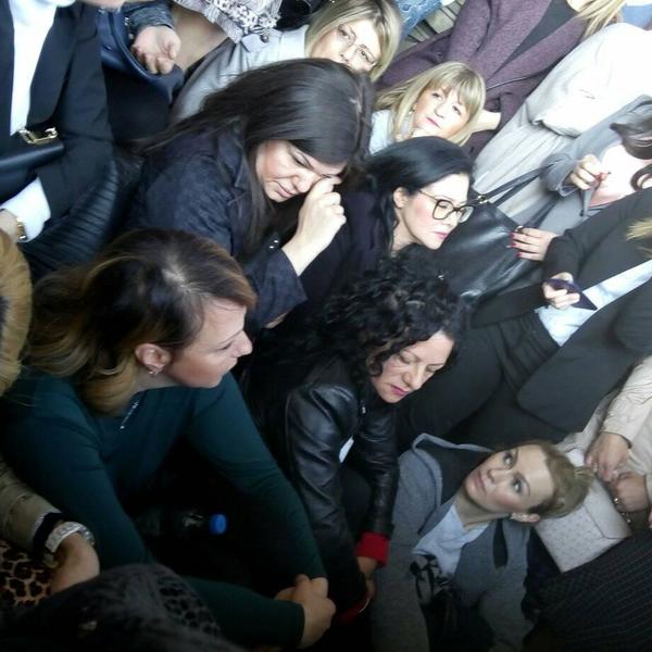 11:09 Žene su ispred Strarog dvora posedale i napravile "živi zid"