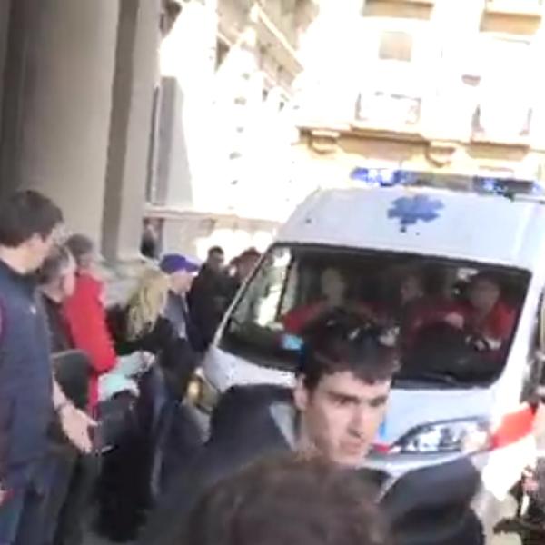 Marko Bastać je zamolio okupljene demonstrante da se sklone kako bi prošla kola Hitne pomoći i ukazala pomoć ženi.