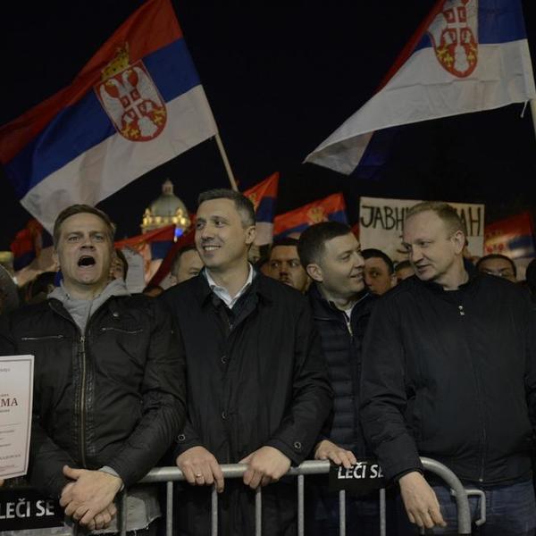 Potom je učestvovao i u sramnom skandiranju i vređanju predsednika Srbije, Aleksandra Vučića, stojeći u prvom redu sa liderima Saveza za Srbiju.