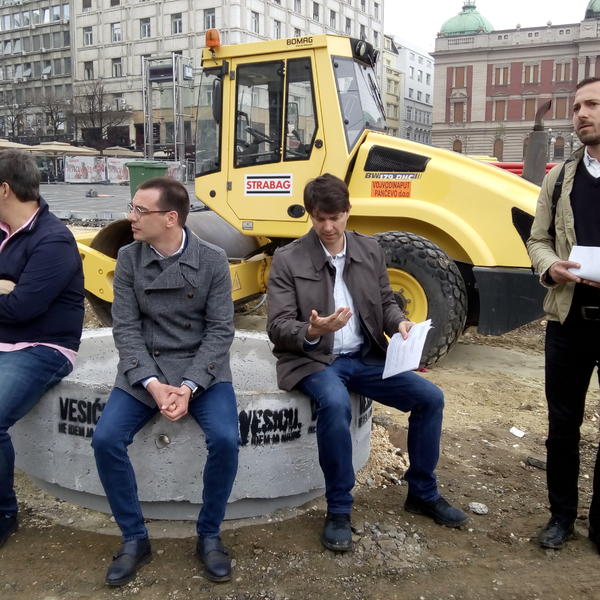 -Podneli smo i zahtev za vanredni inspekcijski nadzor od Ministarstva građevinarstva, saobraćaja i infrastrukture, jer smatramo da je ovo divlja gradnja i borićemo se svim pravnim, političkim, ali i fizičkim sredstvima kao danas, protiv ovih suludih radova i pretvaranja centra Beograda u ratnu zonu- poručio je Jovanović.