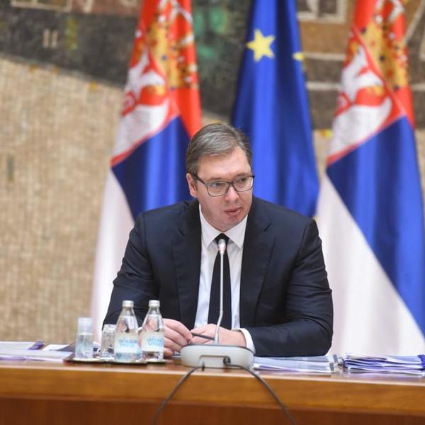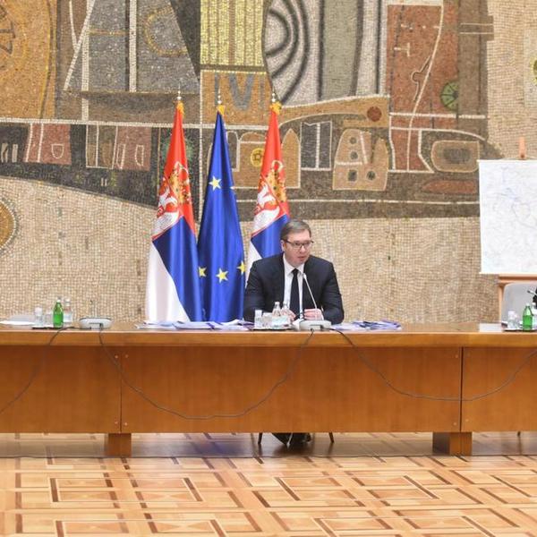 Predsednik Aleksandar Vučić obraća se javnosti posle sastanka koji je održao s ministrima u Vladi Srbije i direktorima javnih preduzeća zaduženim za strateške projekte iz oblasti infrastrukture, rudarstva, energetike i privrede.