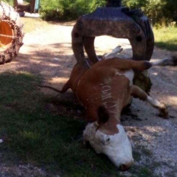 Ta krava ju je oborila na pod, a zatim nastavila da je udara glavom dok je ležala. U međuvremenu, kaiš za torbu joj se upleo oko vrata i zamalo je ugušio ostavljajući joj jeziv trag na vratu.
