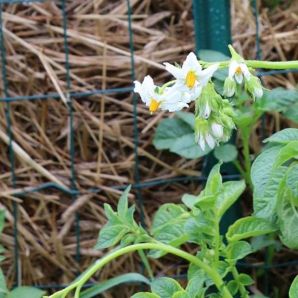Ovo je jednostavno rešenje. Potrebno vam je: 4 stuba za ogradu, 8 metara žice, sekač žice, slama, vreća zemlje i seme krompira (klijali krompir).