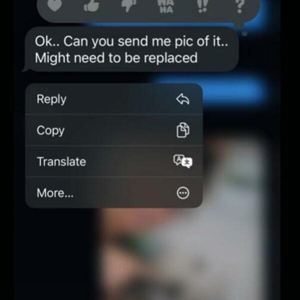On je brzo odgovorio: ,,U redu, možeš li mi poslati sliku...možda je treba zameniti."
