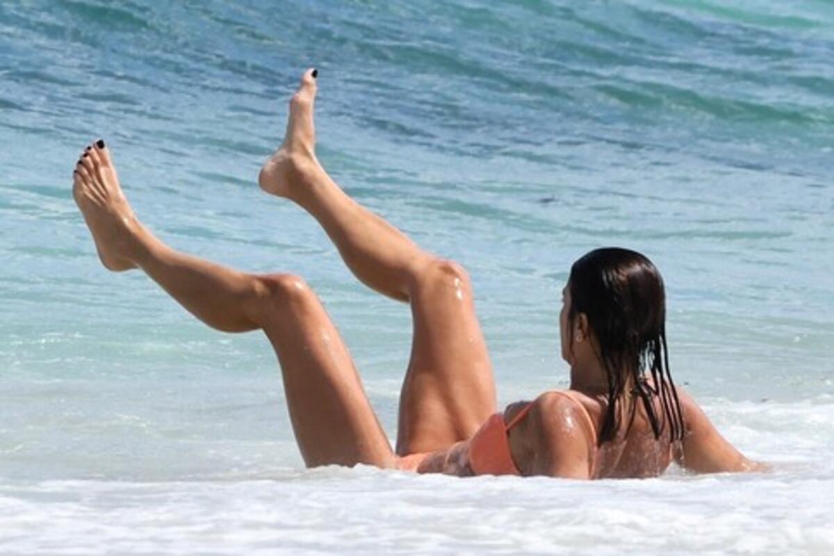 Elizabeta Kanalis šetkala se plažom, uživala u kupanju i stvarala zazubice svim ljubiteljima leta, a takvih je sigruno mnogo. Kupaći kostim čiji se gornji deo vezuje na kukovima, a gornji krasi širi deo na leđima, otkrio je njenu sjajnu liniju.