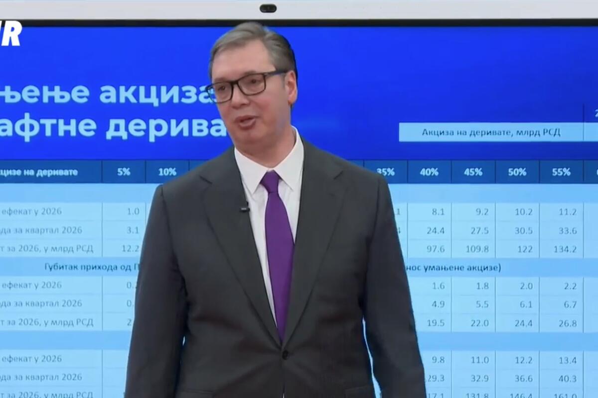 - Mi kada idemo na 60 odsto smanjenja akcize, 104 miliona evra gubimo mesečno. To je katastrofa, ni krivi ni dužni. Nadam se da će neko doći pameti u svetu - prikazao je Vučić.