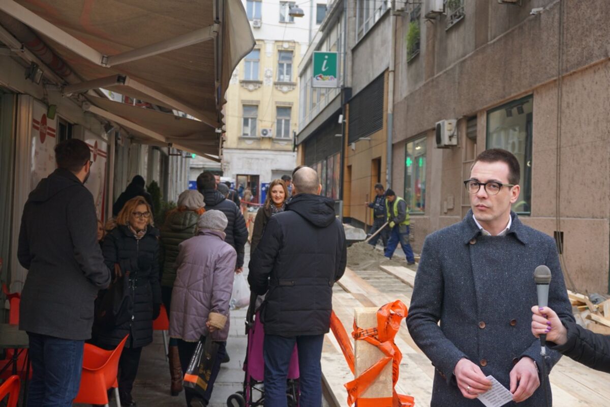 - Nastavlja se okupacija u neposrednoj blizini Knez Mihailove ulice. Očigledno je da je vlastima interes tajkuna koji ovde izvode radove važniji od interesa građana. Međutim, ovakvim potezima se dovodi u pitanje i bezbednost građana, jer nije predviđen adekvatan koridor za vozila hitne pomoći i vatrogasne službe, a da ne govorimo o tome da majke sa decom i invalidi ne mogu da se provlače između bašti i gradilišnih trasa, koje će stajati tu cele godine. Šta radite bre, pitaju se svi koji vide ove prizore - rekao je okupljenim novinarima Marko Bastać, nosilac liste "Šta radite bre" na gradskim izborima.