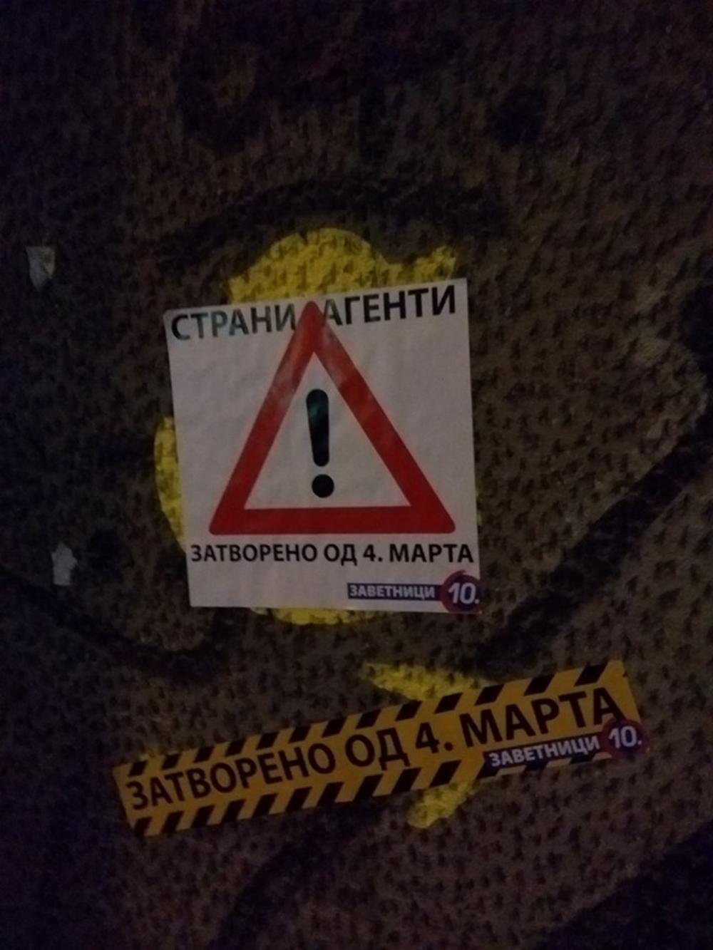 Takođe, na vratima izbornog štaba inicijative i putokazima koji do njega vode osvanule su pretnje potpisane od strane jedne od SNS-ovih izbornih lista, Zavetnici.