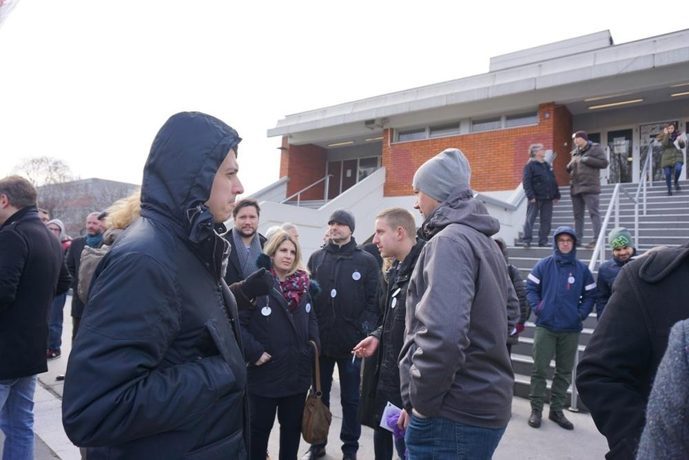 "Beograd nije slobodan grad. Najbolji dokaz za to su saslušanja koja se po političkoj direktivi sprovode u ovoj zgradi iza nas. Očito je da ova vlast pokušava na mala vrata da vrati verbalni delikt . Nemamo pravo da to ćutke posmatramo. Mi kandidati za odbornike sa liste "Šta radite bre - Marko Bastać" nećemo da ćutimo. Pravo da slobodno govorimo je osnovno ljudsko pravo, njega danas branimo tako što jasno kažemo da smo svi Uroš i Ljuba", rekao je Uroš Marković, kandidat za gradskog odbornika na listi "Šta radite bre".