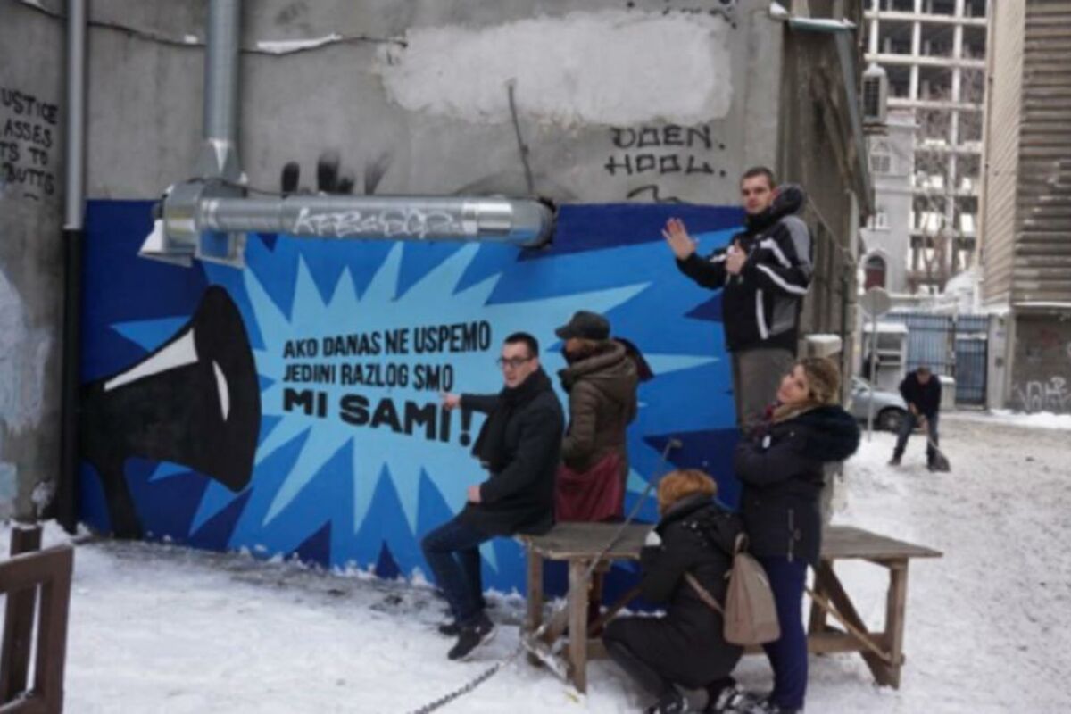 Naime, citat je osvanuo na zidu zgrade u Ulici Maršala Birjuzova 22 uz saglasnost i odobravanje stanara i glasi "Ako ne uspemo danas, jedini razlog smo mi sami"