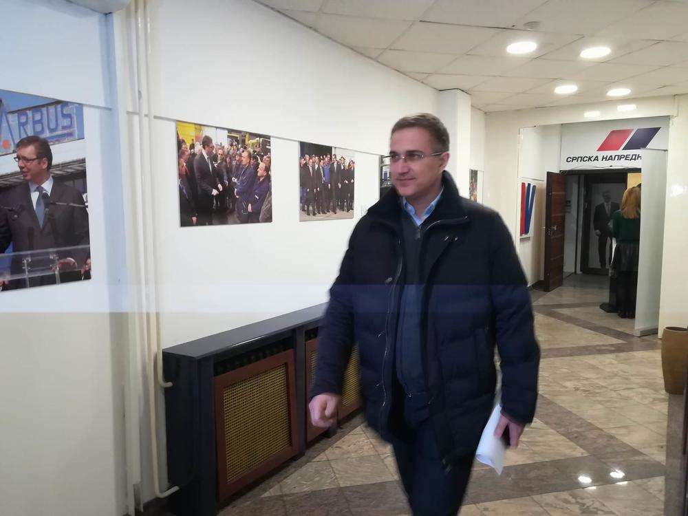 Njegovo lice nije odavalo kako je zadovoljan tokom izbornog dana. Odmah za njim stigli su i Siniša Mali, Nebojša Stefanović, ministarke Kuburović i Joksimović, svi vidno raspoloženiji.
