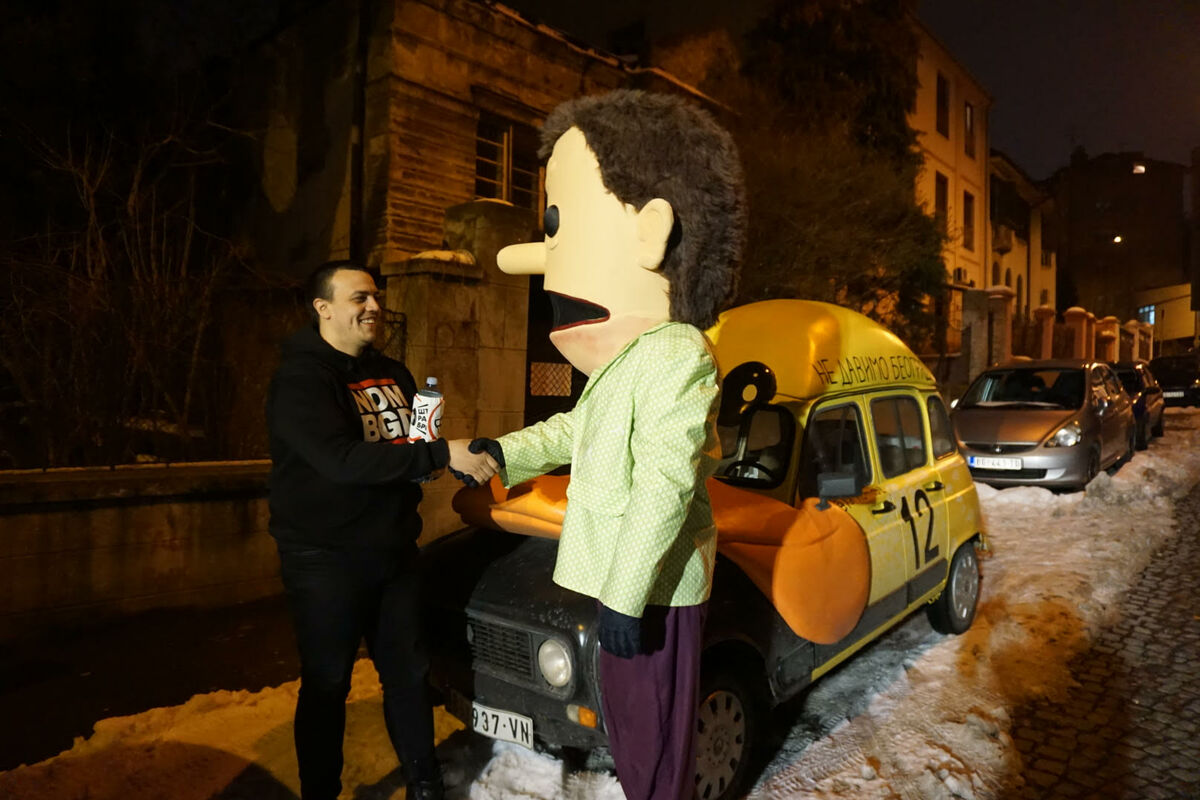 Beogradski komšija Komša uručio je danas nagradu - flašu goriva za “patkomobil”. Patkomobil je izabran za najbolje prevozno sredstvao kampanje 2018. godine na osnovu glasova kandidata i aktivista liste "Šta radite bre - Marko Bastać".