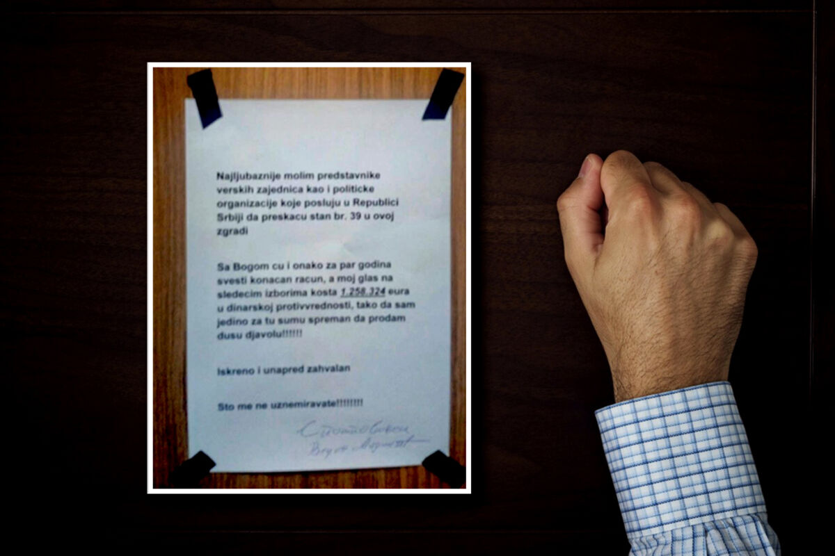 Tako na vrata kucaju predstavnici različitih stranaka, a nekima je već i toga preko glave. Jedan čovek tako je odlučio da javno oglasi kako prodaje svoj glas na izborima, i napisao koja je tačno cena, do dinara.