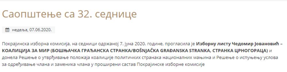 Jovanović je pokušao i od Republičke izborne komisije da dobije saglasnost da njegova koalicija i na parlamentarnim izborima dobije status manjinske, ali je njegov zahtev odbijen kao "neblagovremen".