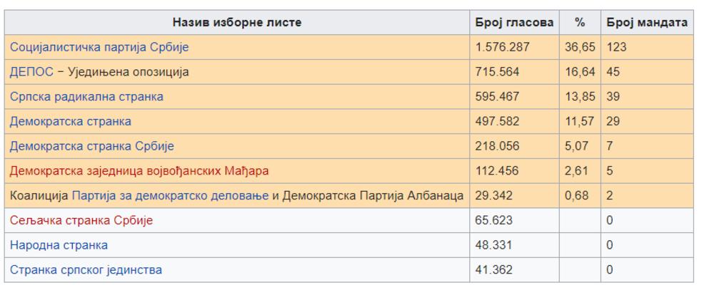 Ovo je podsećanje na sve prethodne izbore, počev od 1990. godine do poslednjih izbora.