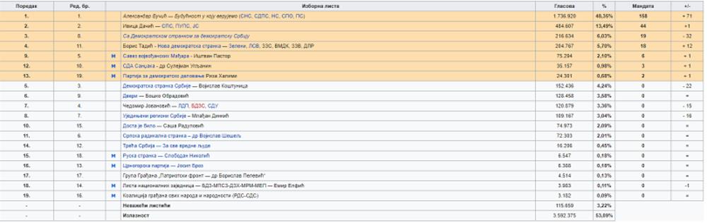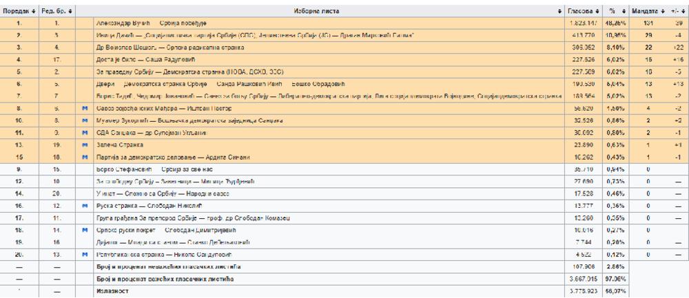 Sigurno ćete dobiti listić sa imenima lista koje žele da osvoje mesta narodnih poslanika u Skupštini Srbije. Glasate zaokruživanjem rednog broja ispred imena liste koja dobija broj mandata u skladu sa procentom osvojenih glasova. Poslanički mandat dobijaju kandidati onim redom kojim su raspoređeni na spiskovima koje su stranke predale pre izbora.