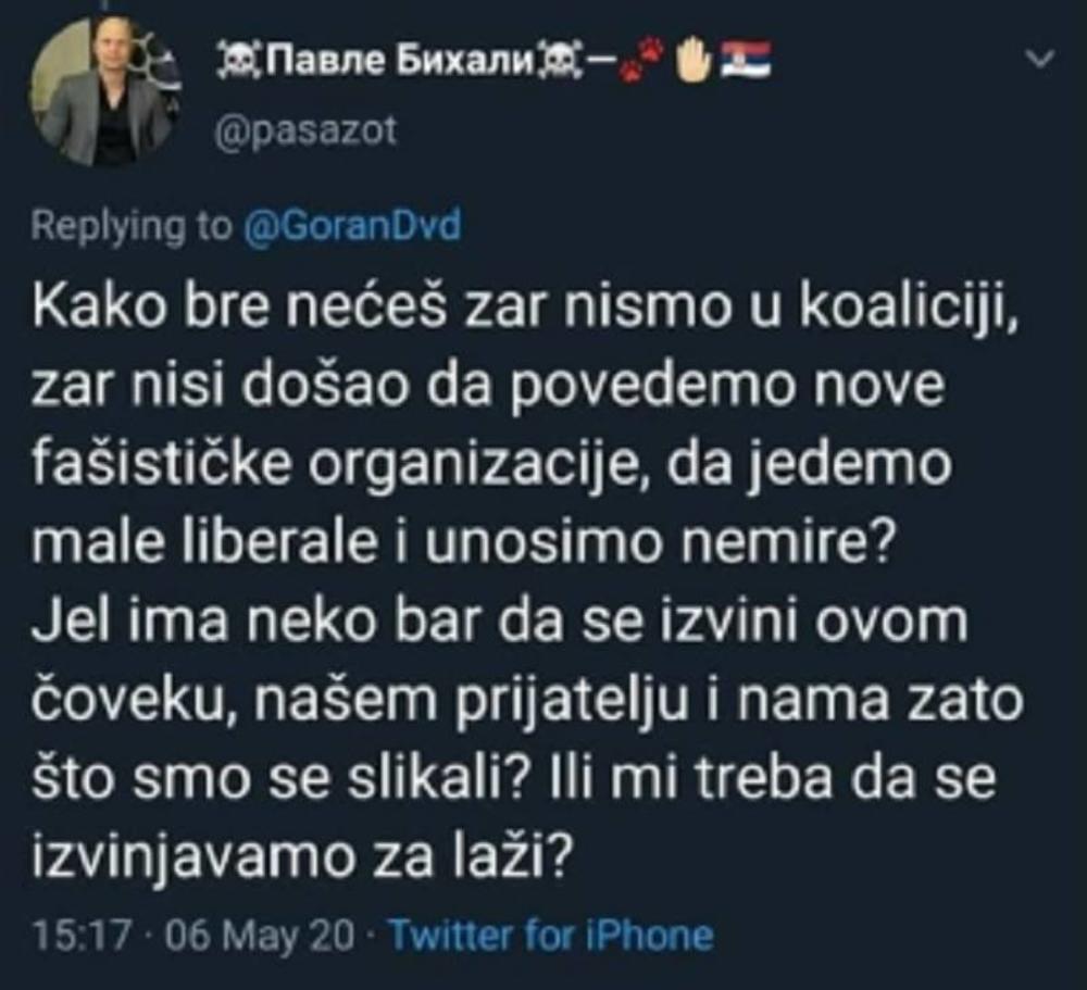 - Teške uvrede upućene su kolegama epidemiolozima, posebno prof Radovanoviću ili direktno ili preko njenih saboraca. Dr Stevanoviću je preko medija postavila psihijatrijsku dijagnozu. Neofašizam se ogleda u njenim redovnim porukama i druženjima sa Goranom Davidovićem Firerom, Pavlom Bihaljijem, Vacićem, a pogotovo posle apsurdnog druženja sa Srećkom Sladoljevim iz Hrvatske, avaksom i ustašom, vrlo su diskutabilni kao i njena ambicija da se politički eksponira, pa je neminovno pitanje, da li je antivakserski stav zaista njen stav ili samo deo sredstva manipulacije kako bi se došlo do cilja, zaključuje doktor i dodaje: