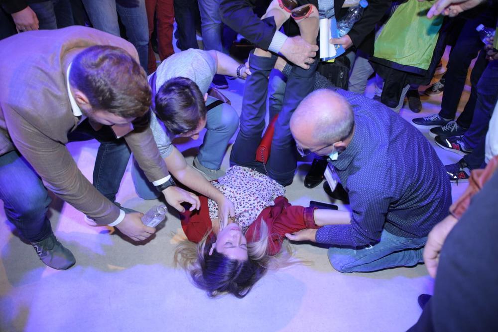 Kako saznajemo, njoj je pozlilo usled gužve i vike i na bini je pala u nesvest. Njoj su brzo pritrčali u pomoć, polivali je vodom i povratili je. Ovaj neprijatan događaj dodatno je uznemirio članove GO, koji od 11 sati pokušavaju da uspostave red i održe sednicu u pozorištu Madlenijanum u Zemunu.
