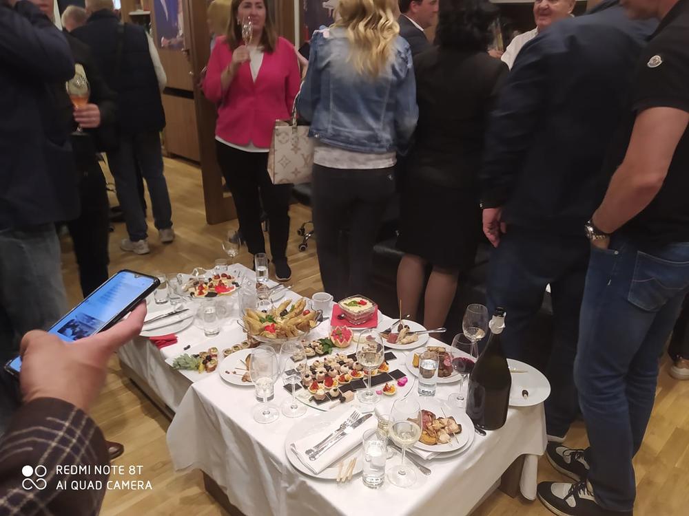 Trpeza je bila veoma bogata. Kao što se može videti na slici, u ponudi je bilo dosta gurmanluka i za svakog po nešto. Uz neizostavan slavljenički šampanjac.