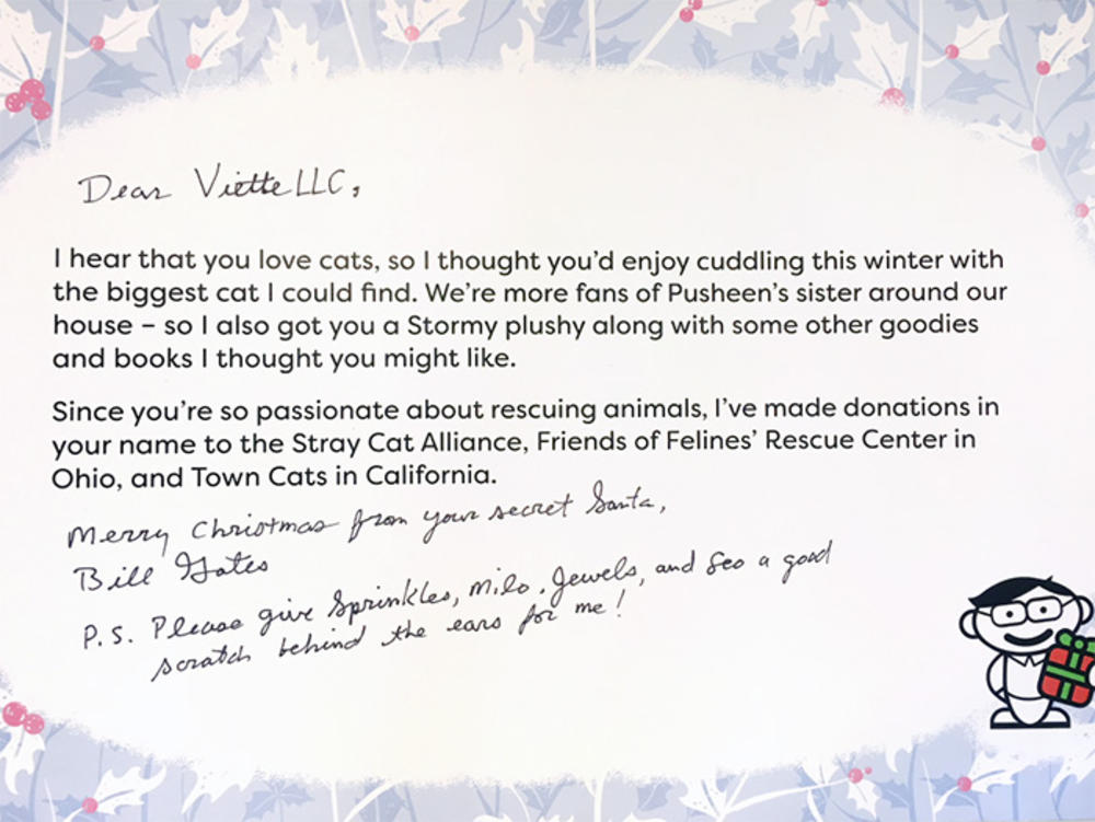 5. Među poklonima su bile i gift kartice sa po 250 dolara za različite azile za mačke