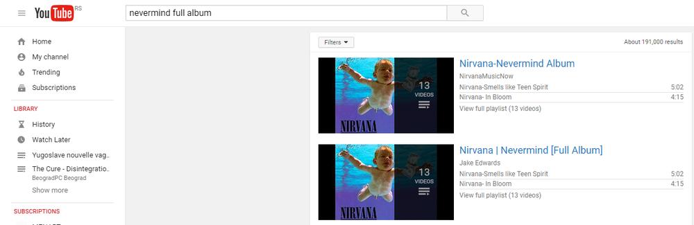 Ipak, jednostavna pretraga na YouTube sajtu će pokazati da još uvek postoji veliki problem sa nelegalno okačenim sadržajem na servisu. Pretragom "full albums" možemo pronaći klasike, poput Marlijevog Legend opusa, Nirvanine Nevermind i mnoge druge. Na nekima su i linkovi za preuzimanje u slučaju da im je album blokiran.
